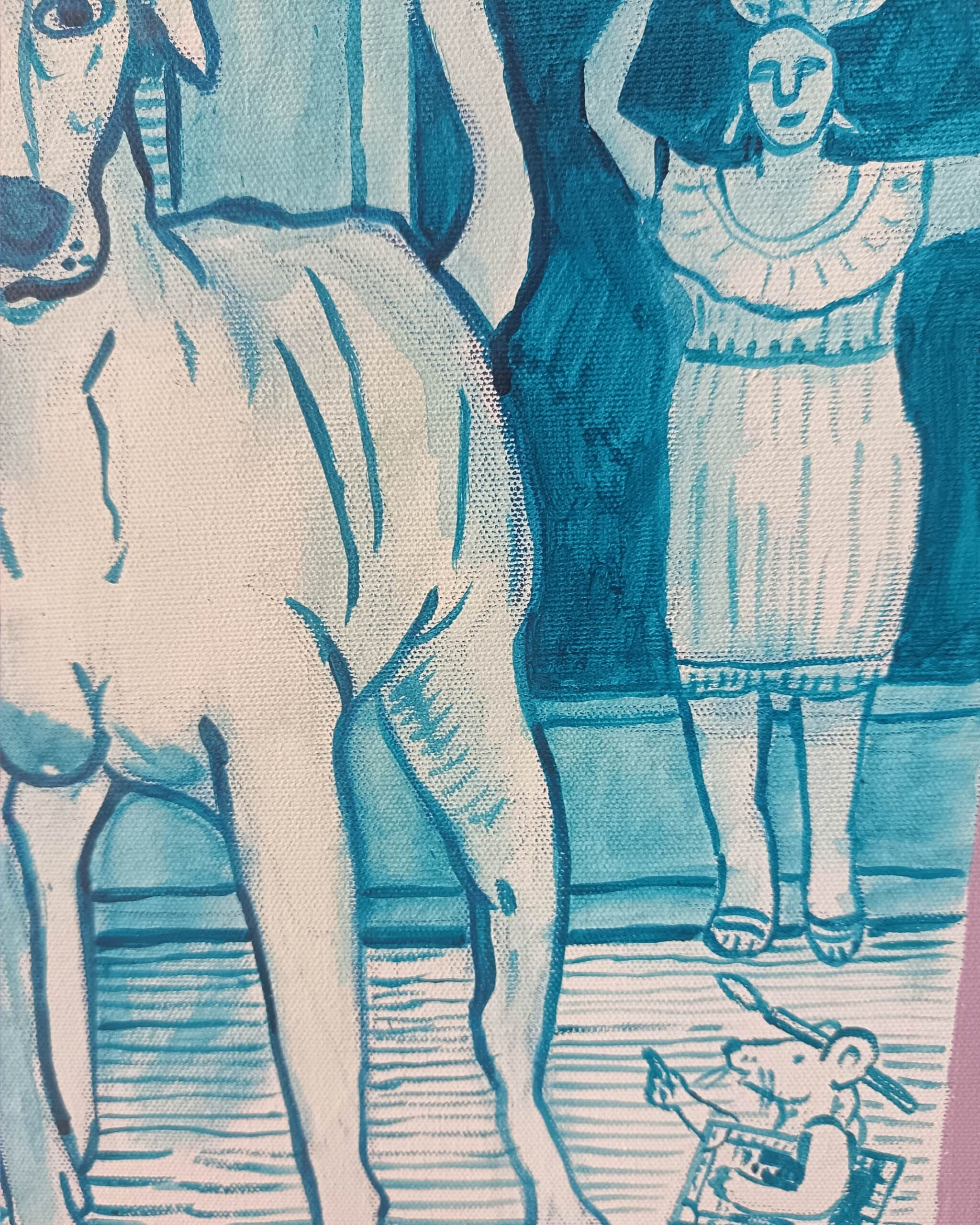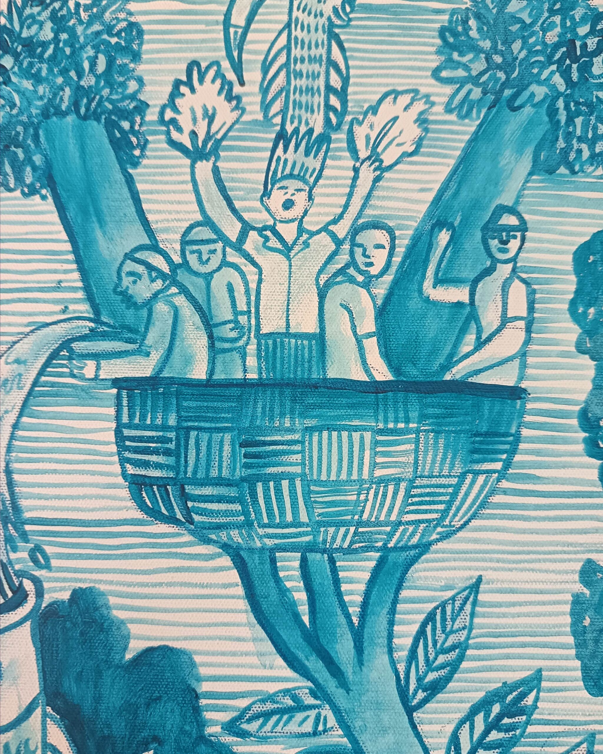 La instalación propone una exploración sobre la cultura marina y las formas de habitarla desde la mirada de quienes pertenecen a ese entorno. Aparecen narrativas que emergen del vínculo con el mar: sus ritmos, sus símbolos y sus formas de vida. “La casa en riba al mar” se construye como un territorio reinterpretado, donde los signos y las estructuras visuales activan nuevas lecturas sobre lo cotidiano.